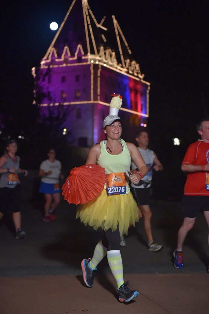 A quick trip to the Magic Kingdom parking lot, had me in my corral at 4 a.m. with an hour and a half until go time! Luckily, the DJ ate his Wheaties and started a lip sync battle between the corrals to see which group of runners could demonstrate the most spunk and ultimately be named, “The Party Corral.”